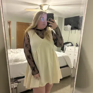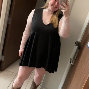 Cute dress, there was already a hole in it unfortunately, as well as a little stain on the side. Overall, good fit!