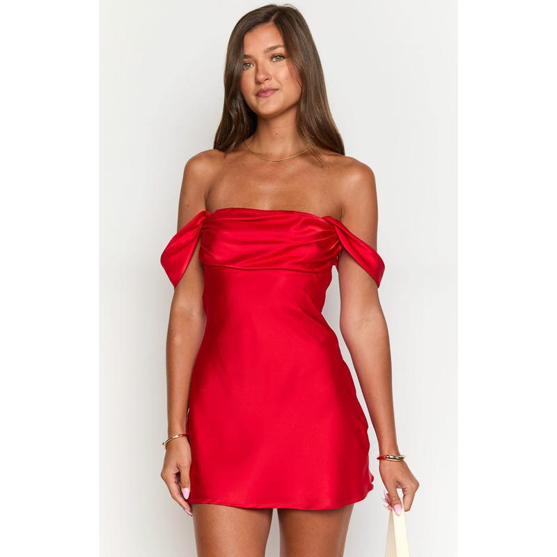 How to style: Fall in love with our Zoella Red Off The Shoulder Mini Dress! Made from a light weight satin material with flirty off the shoulder sleeves, this dress adds the perfect touch of romance! Pair with a sleek clutch and matching red heels and you'll be sure to steal hearts!