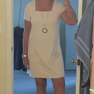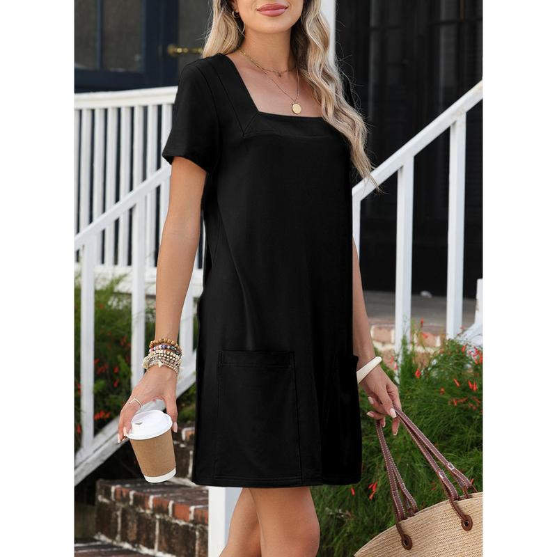 ·Visual: The attached image showcases the dress in black, featuring a square neckline, short sleeves, and pockets.