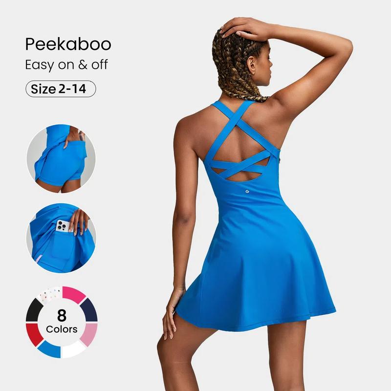 GLOWMODE FeatherFit-Air Peekaboo Mini Dress With Built-In Shorts Pocket Square Neck Anti-Slip Cisscross Dress TikTokShopBlackFriday