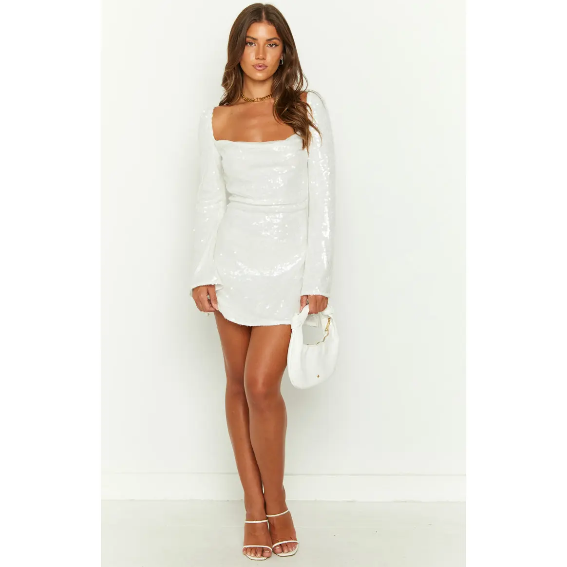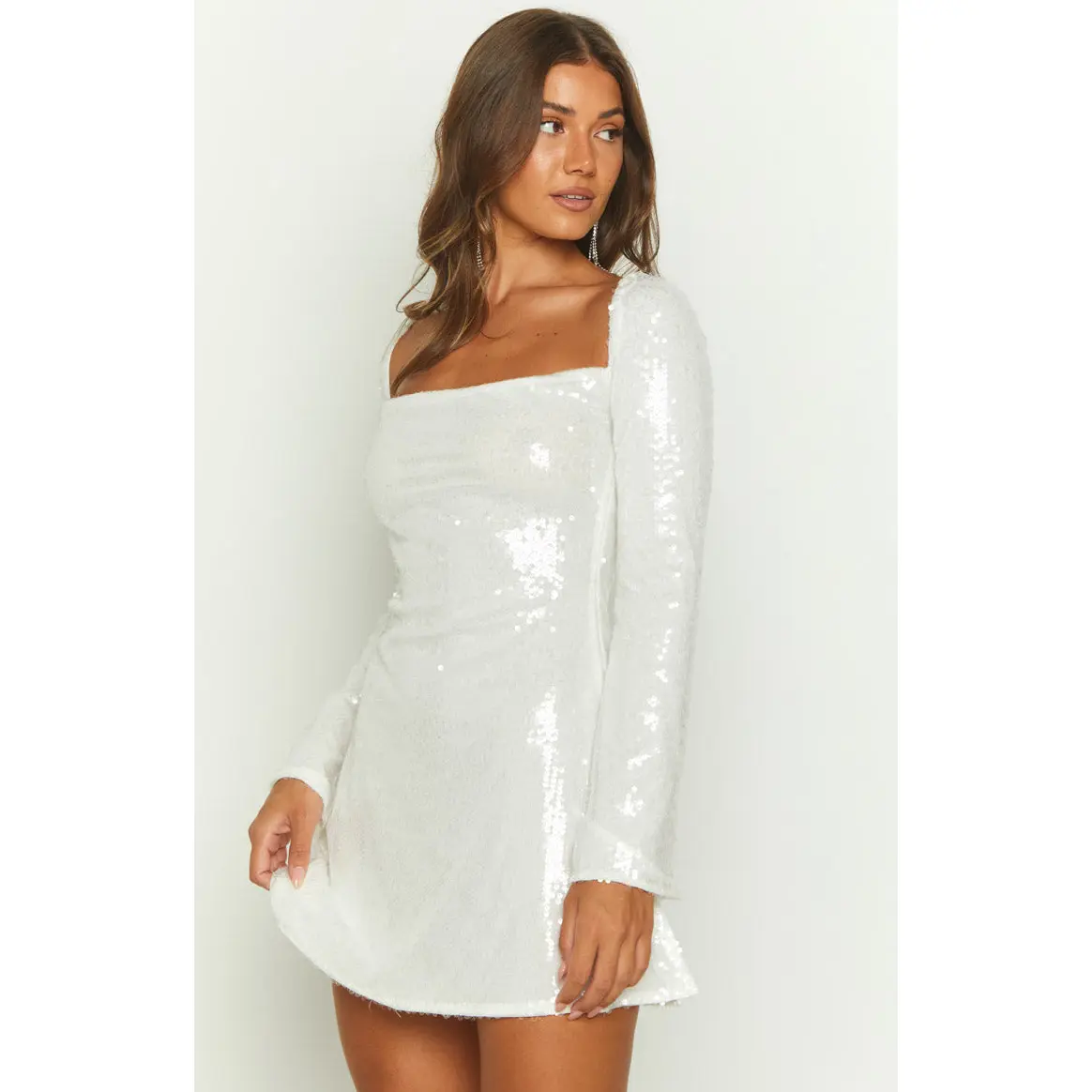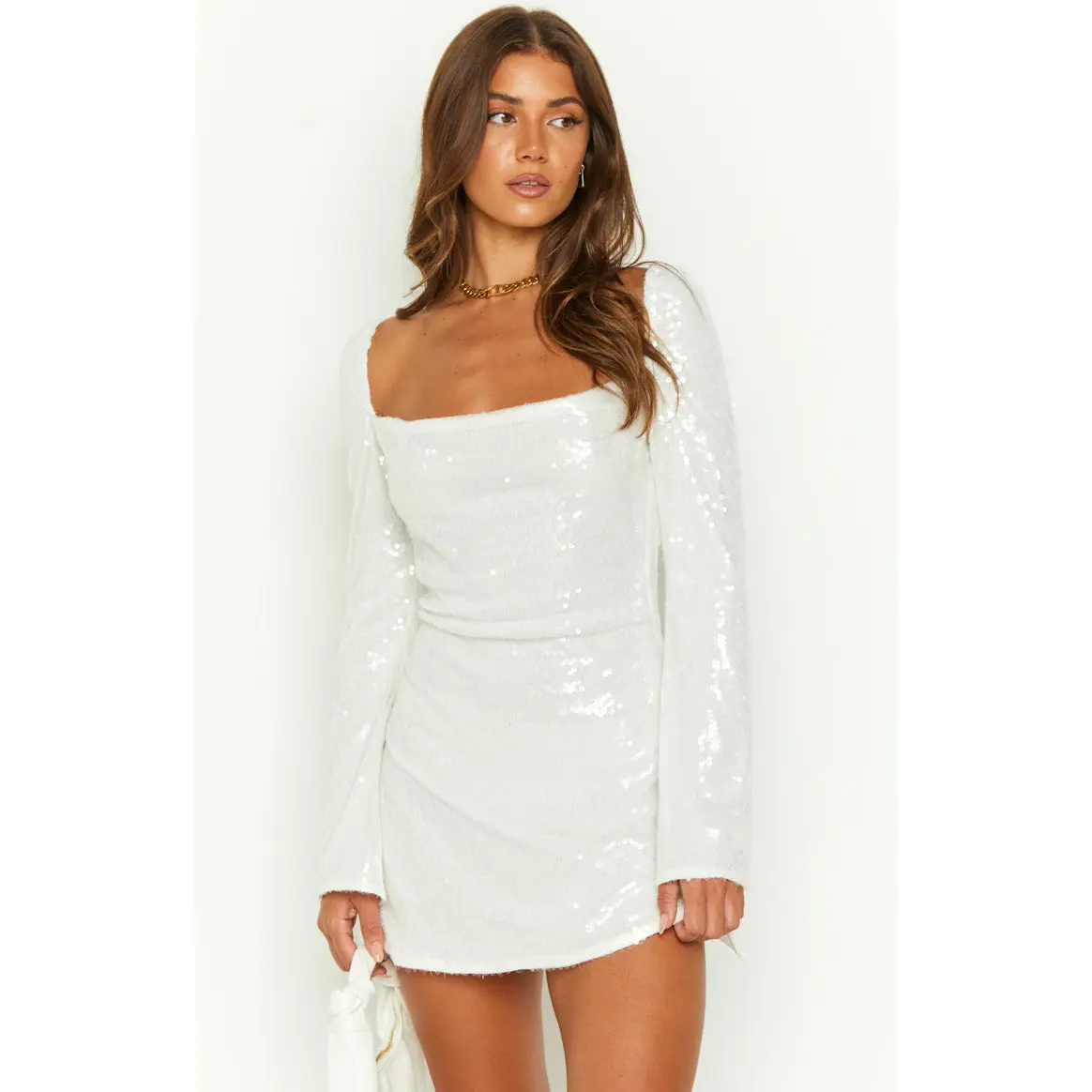 ·Our bestseller but with glam! Our Marienne Dress now comes in a stunning white sequin design. Add heels and dainty jewellery for a jaw dropping outfit.