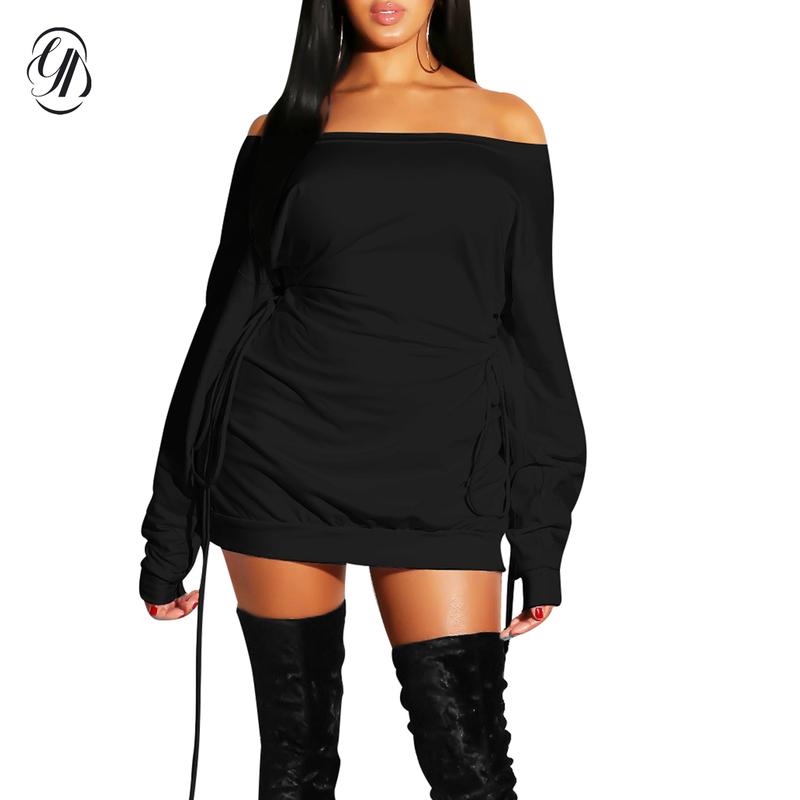 Stylish and Cute. Long Sleeve, Loose Fit, String lace up slash neck dress, Off shoulder, adjust drawstring waist size.