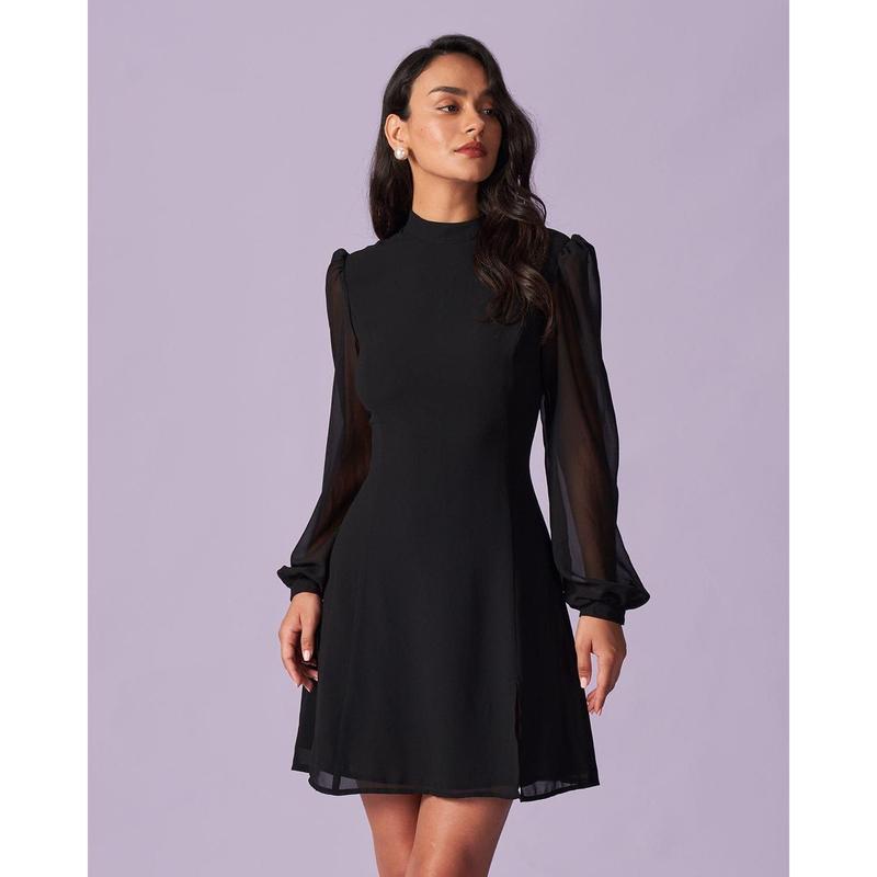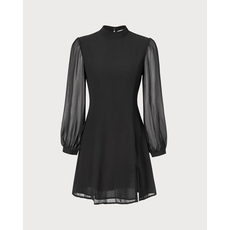 5. The Black Stand Collar Sheer Slit Mini Dress