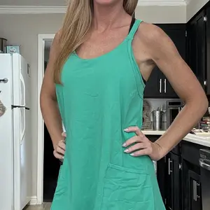 Love this dress!!! For context, I’m .5’4 and 150lbs. This is a medium and it isn’t too small or too big. I love this dress and it has shorts with pockets !! I def want to get more in different colors!!