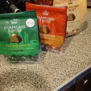 They’re delicious, but the original Dubai one doesn’t taste like pistachio, it taste more like peanut butter, my favorite one is the bisco cream, but try them because they are very good and the bags are pretty big. Good size piece of chocolates
