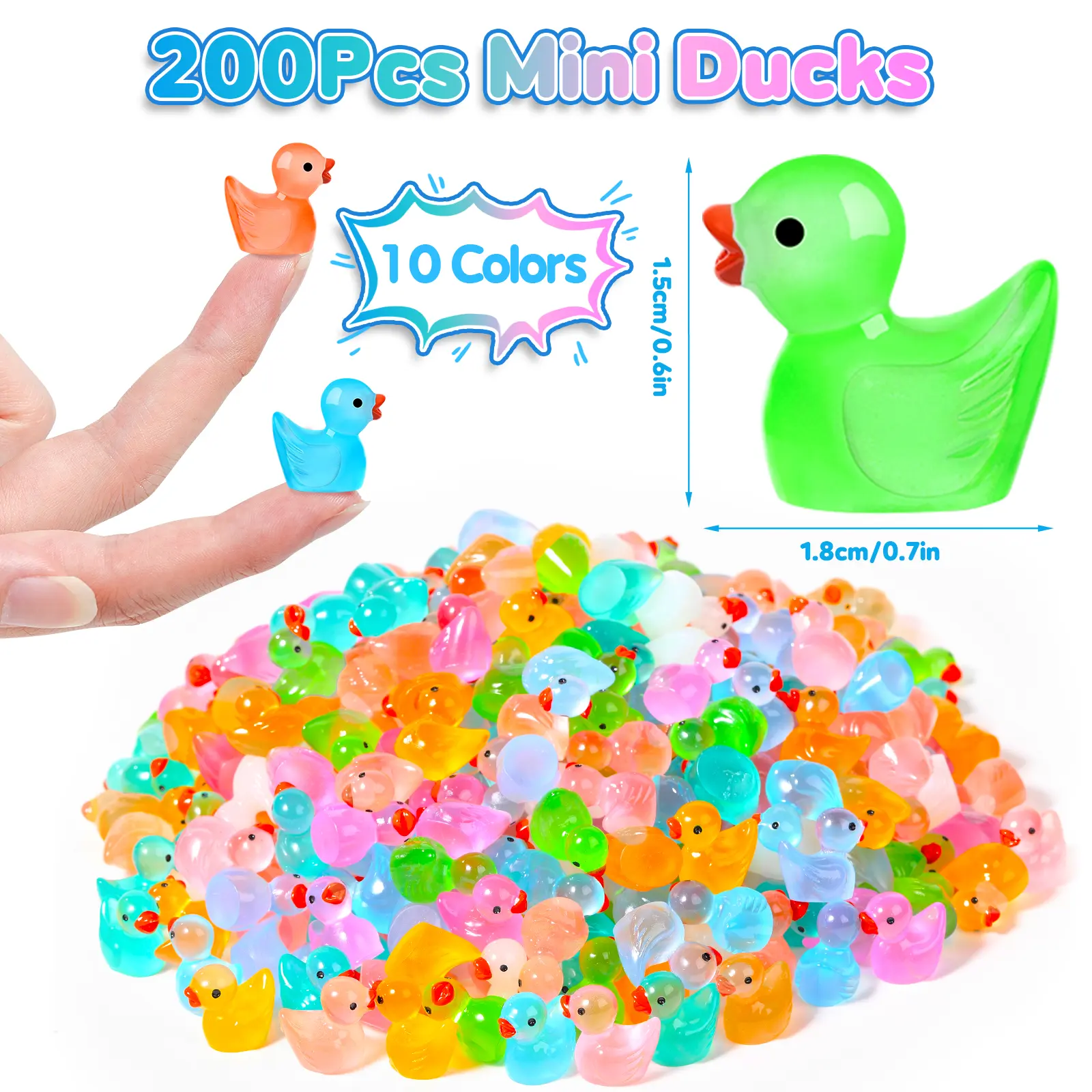 Get ready to be amazed as you receive a whopping 200 mini resin ducks, carefully sorted into 10 distinct colors. Each color has 20 adorable ducks, ensuring a rich and varied collection. These ducks aren't just ordinary; they're translucent and fluorescent, which means they glow enchantingly in the dark. This feature makes them an absolute attention - grabber, whether in a dimly lit room or a shadowy garden. With such a wide range of colors and a generous quantity, these little ducks are your go - to for any creative or decorative project you have in mind.