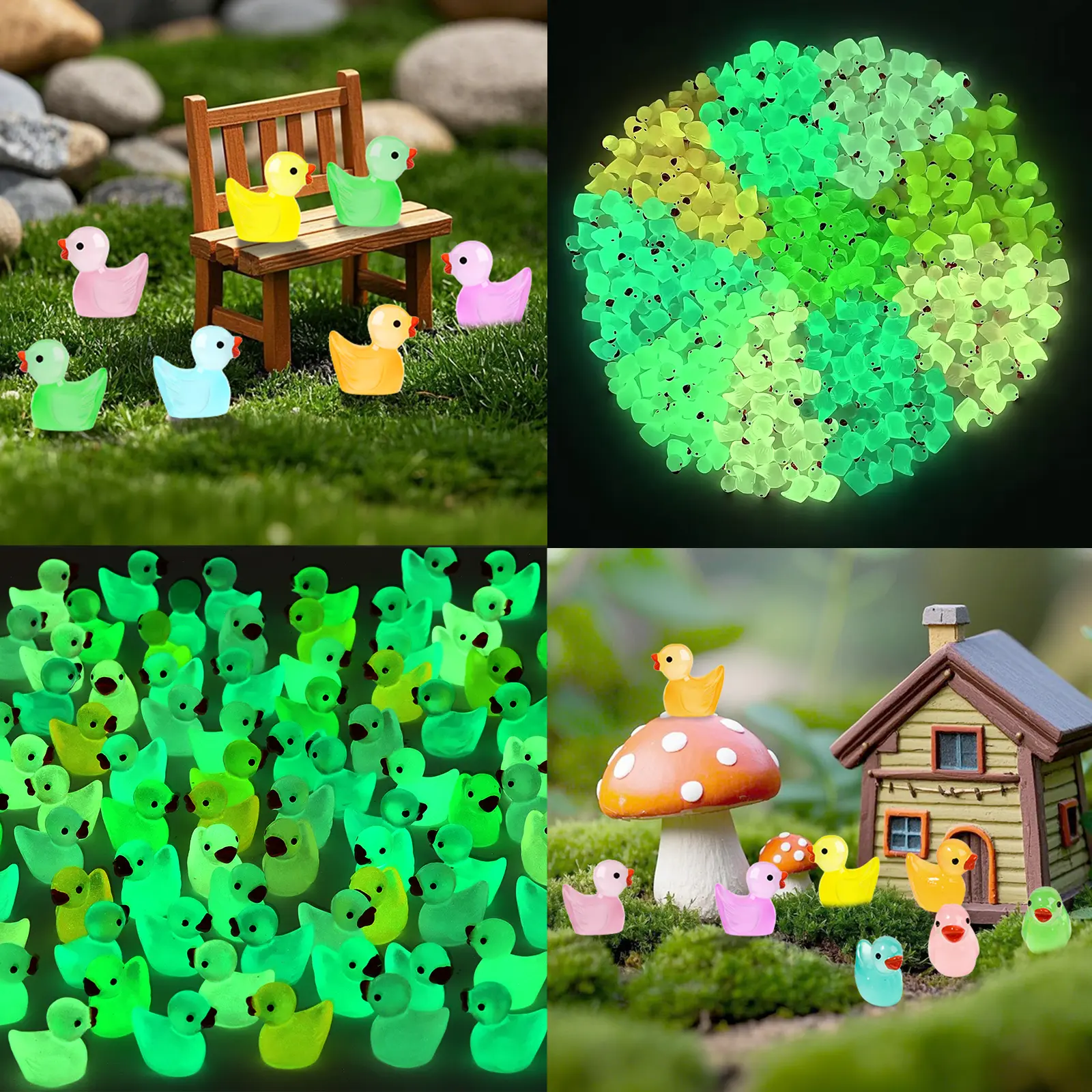 Our mini ducks possess a truly unique glowing effect. They have the remarkable ability to soak up sunlight or any form of light. The more intense the UV light they're exposed to during the day, the brighter they'll shine when night falls. This makes them ideal for a variety of activities. Use them for exciting treasure hunts, where participants can search for these glowing gems in the dark. Or, incorporate them into your fairy garden decorations, adding a touch of magic that comes alive after sunset. They bring joy and wonder, both during the day and at night.