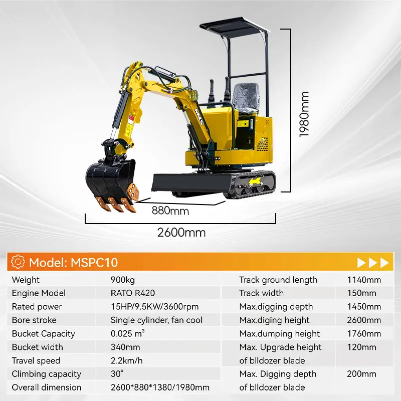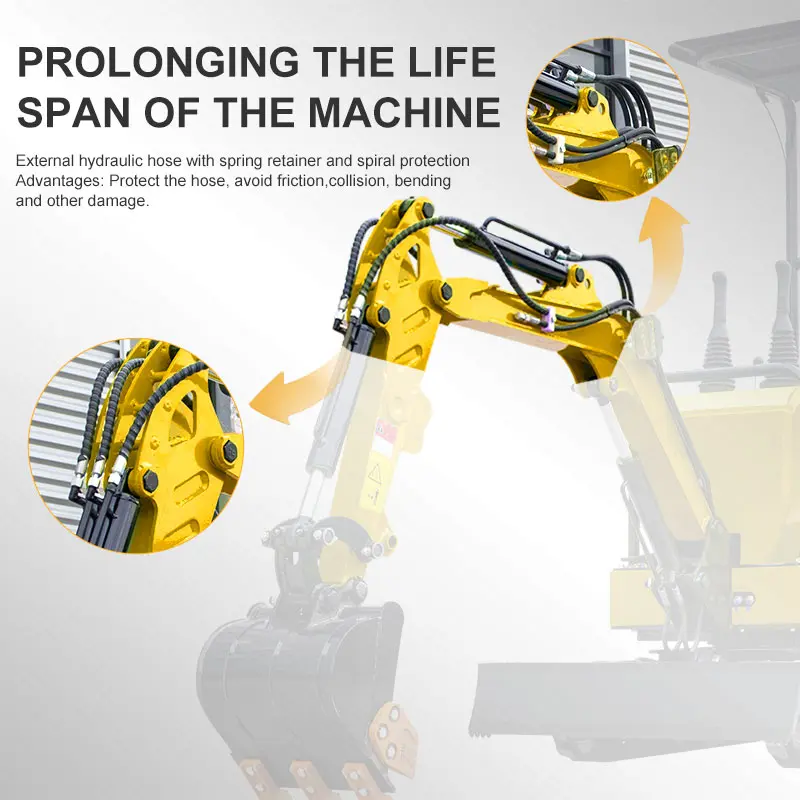 ·Simple Operation: Mini excavator are designed to be simple and easy for beginners to operate. Front mounted operating lever and adjustable speed