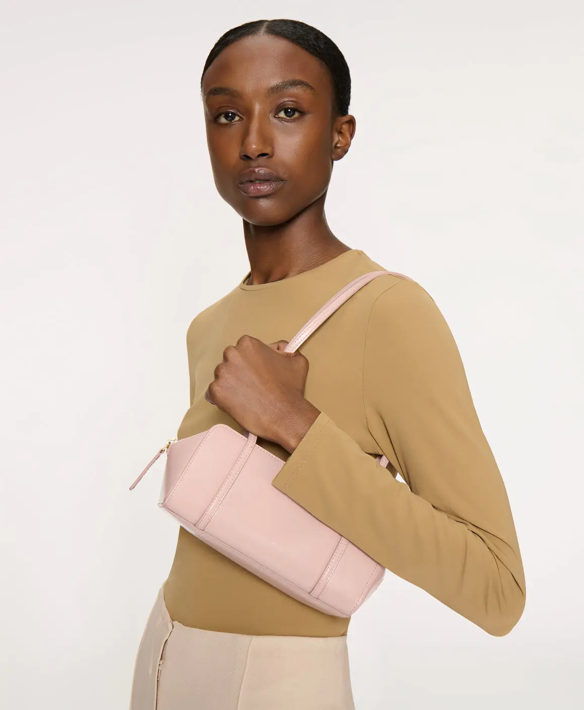 A compact rectangular bag with a thin double strap, the Mini Filo is designed to fit phones and small daily essentials in a streamlined silhouette.