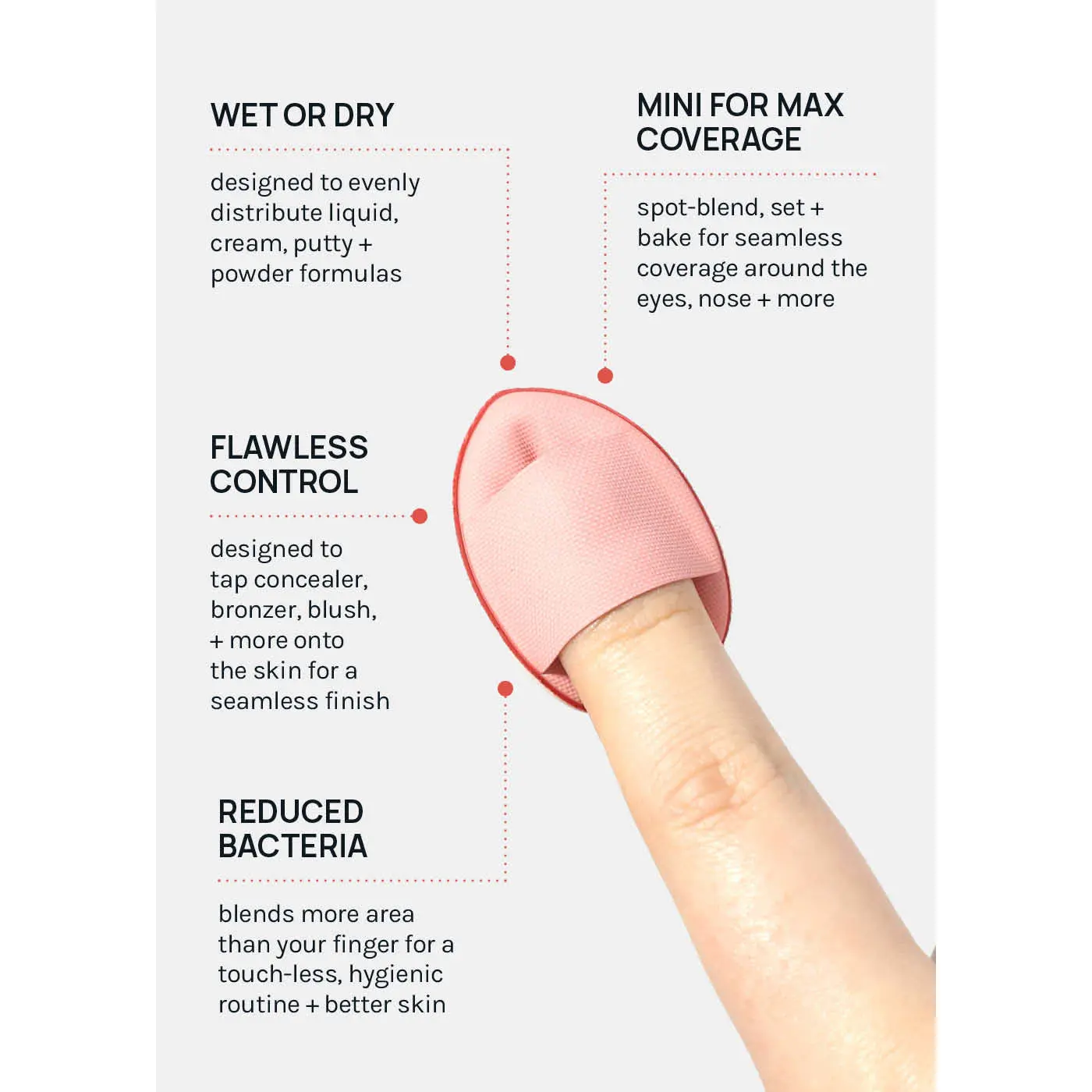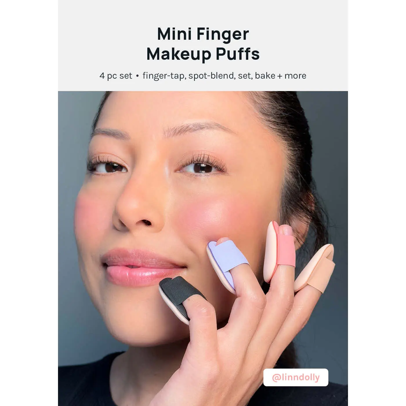 Achieve a picture-perfect makeup finish with these Mini Finger Makeup Puffs, a 4-piece set designed for detailed application + touch-ups. These compact, finger-hugging puffs ensure maximum control to flawlessly reach every corner of your face. Whether you're applying blush, blending concealer, or perfecting around the nose + eye areas, these puffs have you covered.
