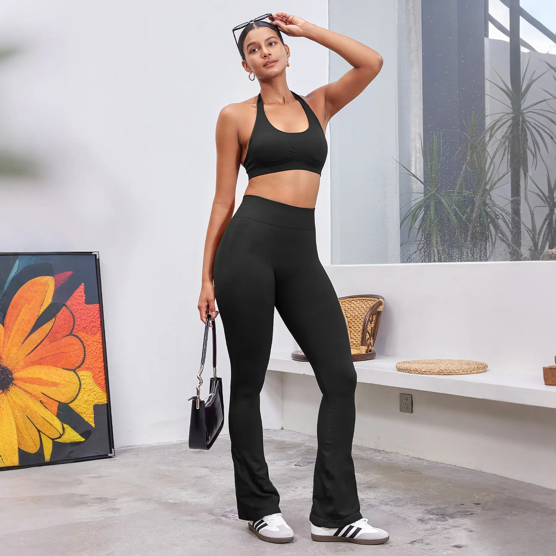 ·High-waisted Design: Effectively flattens the tummy and creates slender legs. These mini flared pants elongate the leg lines, making the legs appear slimmer.