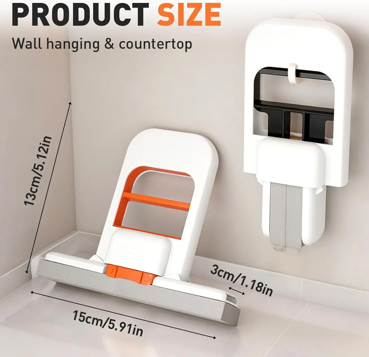 【Premium Versatility】: Deep cleans and easily removes tough stains and grease from kitchen countertops, tile walls, and bathroom mirrors. Simply push and pull to squeeze and rinse, eliminating the need for hand washing. Cleans and dries the mop in seconds. Stand-up or hanging design: Easily store upright or hang on the wall. Keep your space neat and organized.