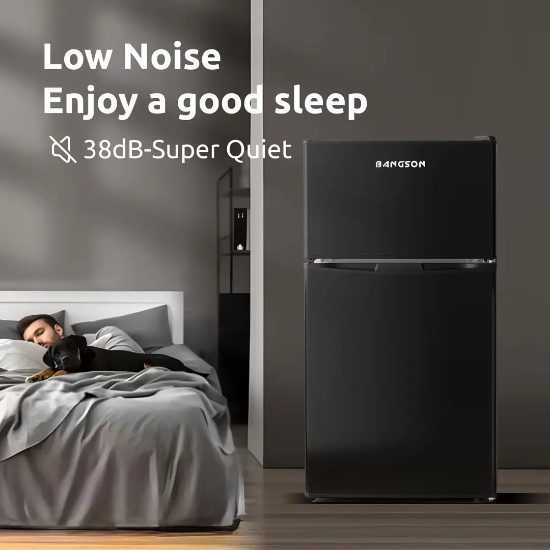·Space-Saving & Spacious: Compact size (17.9"x19.68"x34.01") with 3.2 cu.ft capacity, featuring separate storage to keep drinks, fruits, and veggies fresh.