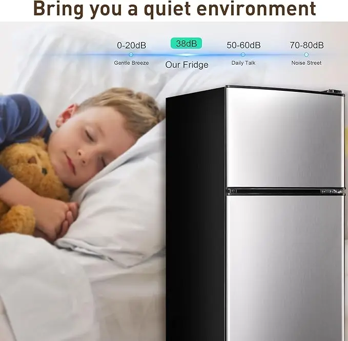 ·【Whisper-Quiet & Energy-Efficient】Experience tranquility and efficiency with this dorm fridge. Its innovative design ensures silent operation, minimizing noise when accessing the fridge. Advanced noise-reducing components provide a peaceful home environment. Additionally, its low energy consumption makes it an ideal choice for those who prioritize sustainability and energy efficiency.