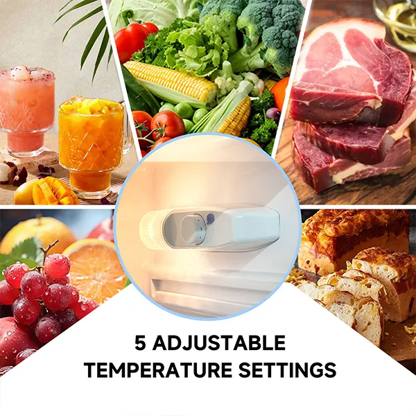·Cooling & Freezing Flexibility: 5-level adjustable thermostat (1st warmest, 5th coldest); 2.26 cu.ft cooling zone maintains 33.8°F–46.4°F for food freshness.