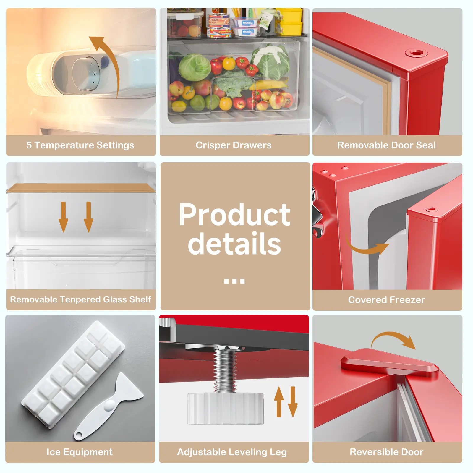 ·Essential Accessories: Includes 2 shelves, 1 crisper, ice tray, and defrost tool.