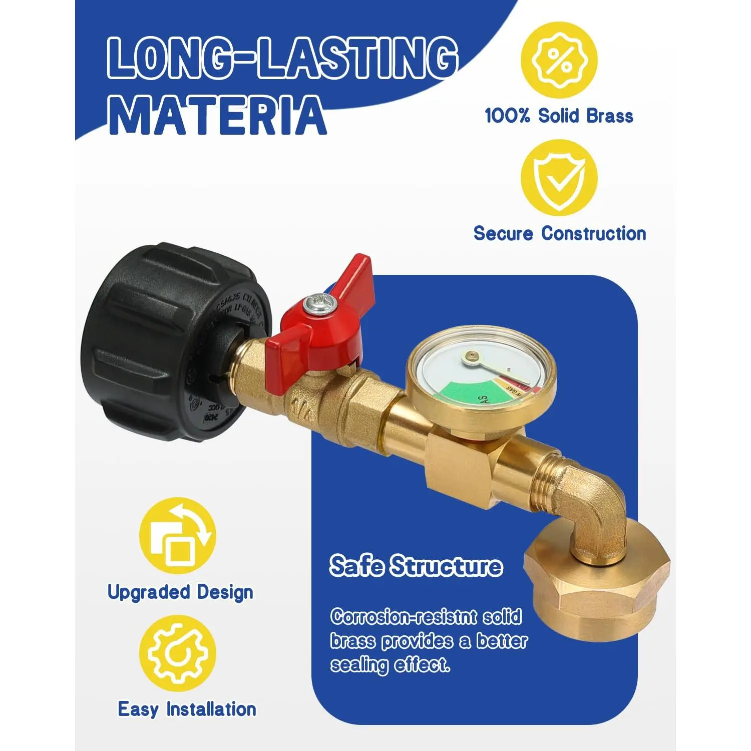 ·Solid Brass: Crafted from 100% solid, durable brass, our adapter provides a sealed, airtight connection. It withstands wear and pressure changes, extending the product's lifespan. The valve and gauge are easy to disassemble and clean.
