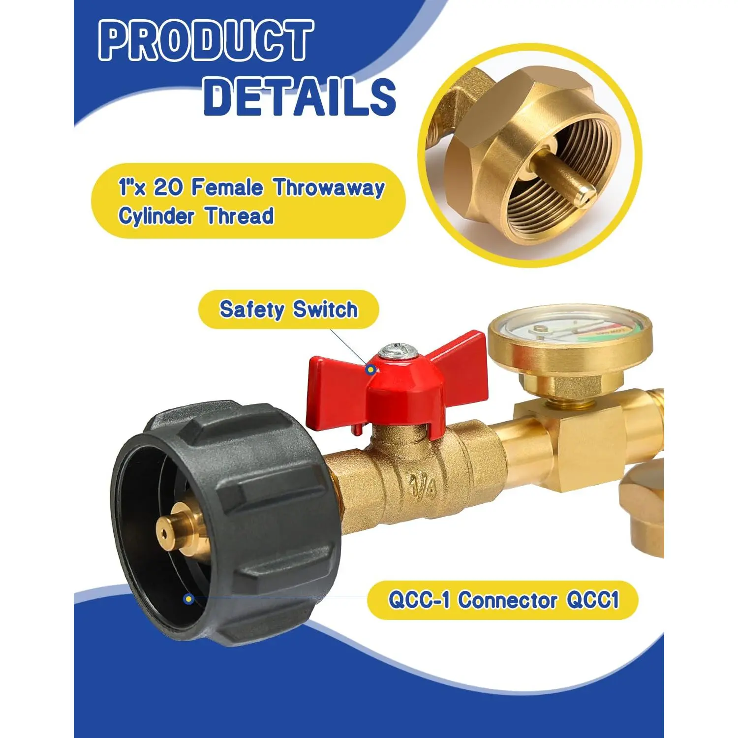 ·High-Quality Valves and Gauges: Our propane refill adapter ensures safe, leak-free refilling. The on/off control valve prevents gas leaks, while the real-time pressure gauge avoids overfilling. The included sealing tape ensures a tight connection, adding extra safety.