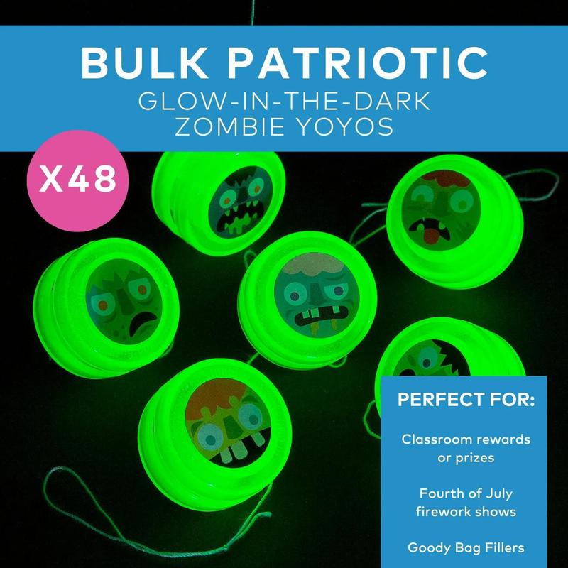 Sure, zombies are creepy. But it’s hard to find them scary when they’re glow-in-the-dark YoYos! Kids (and probably some adults!) will have a great time with these not-so-creepy YoYos featuring zombie faces. Hand these out as a Halloween party favor or even to trick-or-treaters as an alternative to candy. Students will work hard to earn these YoYos as classroom rewards or prizes during the Halloween season! Plastic. (4 dozen per unit) 1 1/4" Expose items to direct daylight to activate glow. © OTC