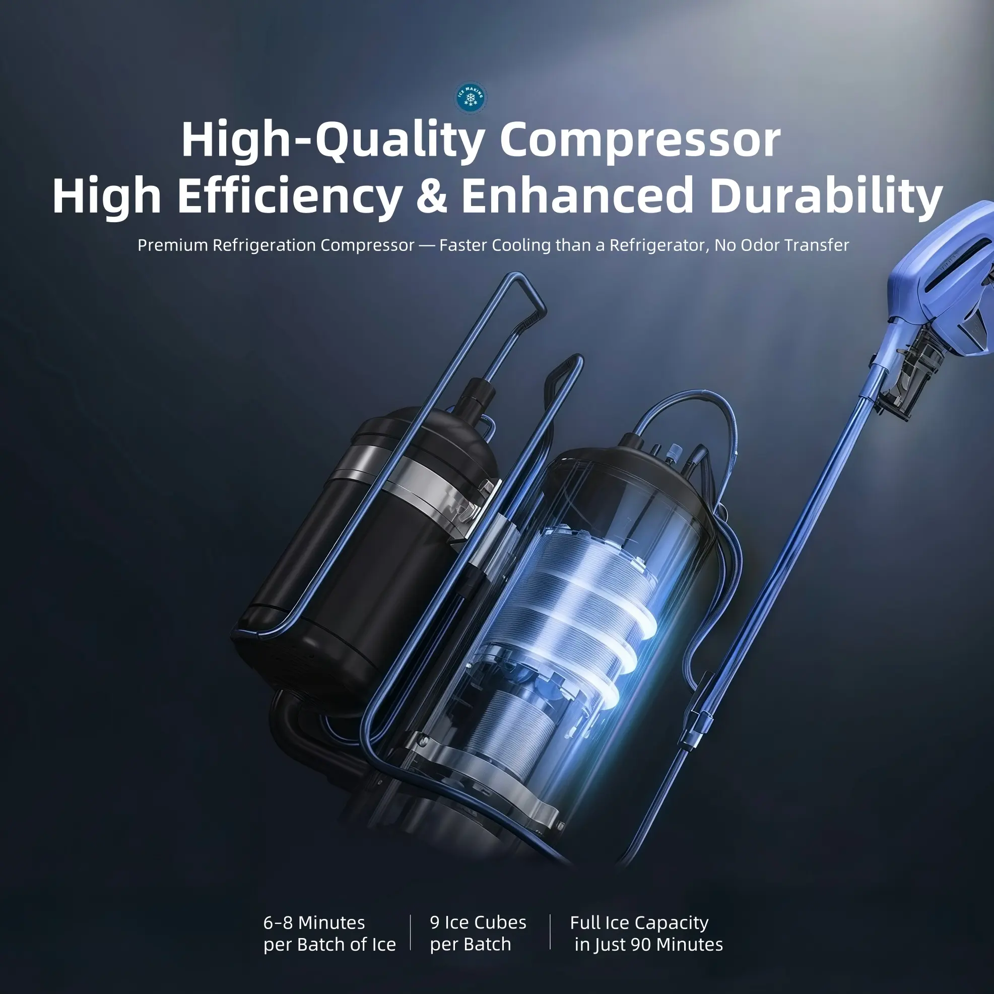 Ecozy Countertop Ice Maker, Portable, Self-Cleaning, 9 Bullet Ice Cubes in 6 Mins, 26lbs/24Hrs, Ice Maker Machine with Ice Bags, Handle, Standing Scoop and Basket