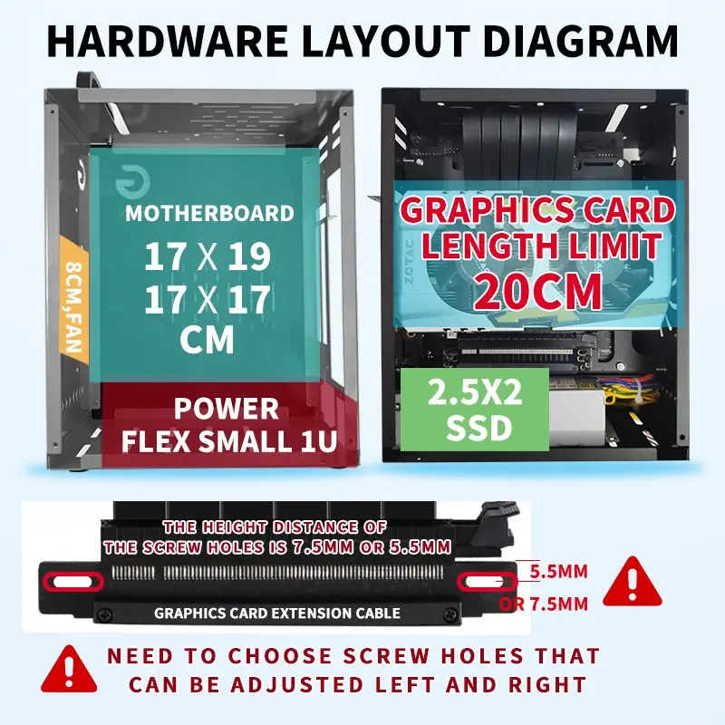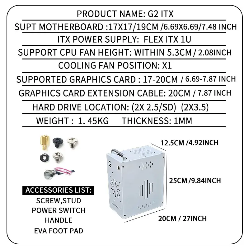 Mini Itx Computer PC Desktop Case, Home Use 2 Bay Nas Box, Compact Portable Handheld, Includes Accessories Screws Switch Handle Foot Pads