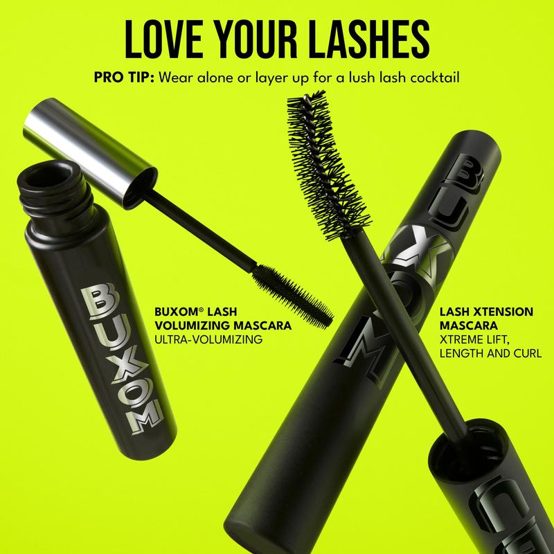 Lash extensions in a bottle! BUXOM's Lash Xtension Lift Mascara gives long-lasting lash lift length and quick-build 24HR volume*. The special star-fibered brush and natural curved wand give an eye-opening effect. Tubing technology allows tug-free removal with just warm water.