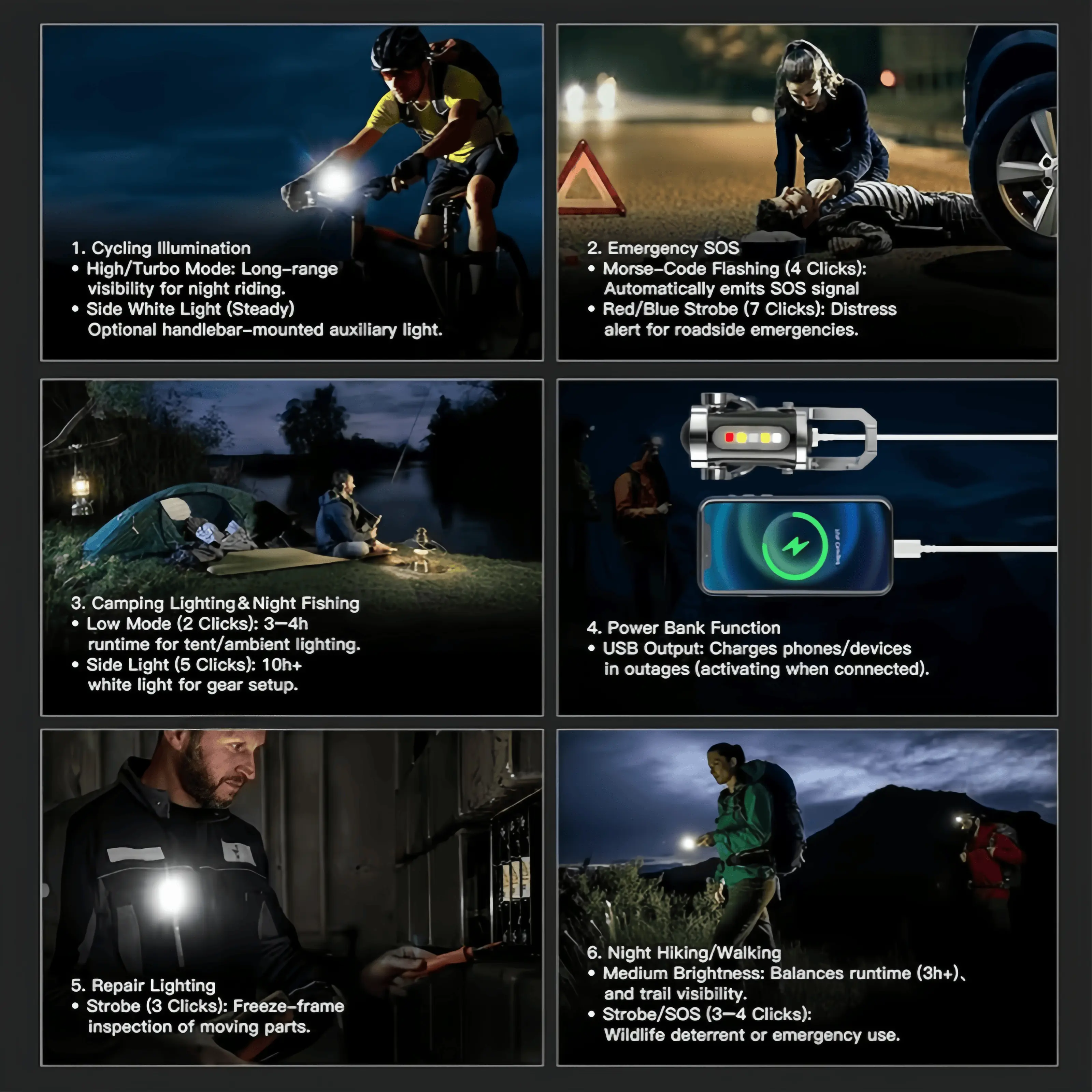 ·Strobe and SOS Light: Includes a strobe and SOS light function, ideal for emergencies and signaling. 🚨