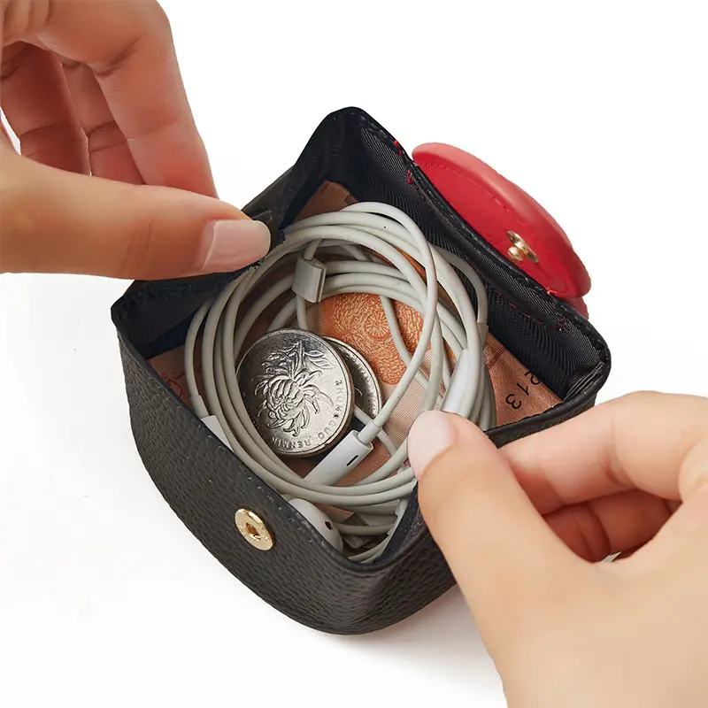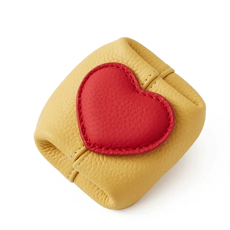 Mini Lychee Pattern Cowhide Heart Coin Purse, Solid Color Buckle Key & Earphone Storage Bag, Color-Block Leather Change & Jewelry Pouch for Daily Use