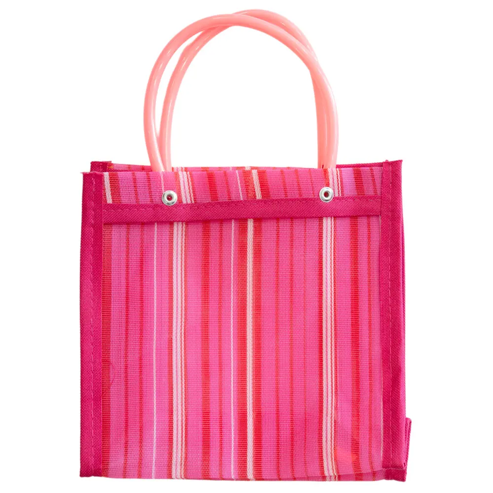 This mini mercado tote bag is a charming twist on the traditional Mexican bolsa. Handwoven with colorful plastic threads, it’s perfect for small errands or as a reusable, eco-friendly gift bag. Measuring 7 x 8 inches, its compact size makes it both functional and decorative. A unique way to add a touch of Mexican craftsmanship to your daily life or to present a special gift.