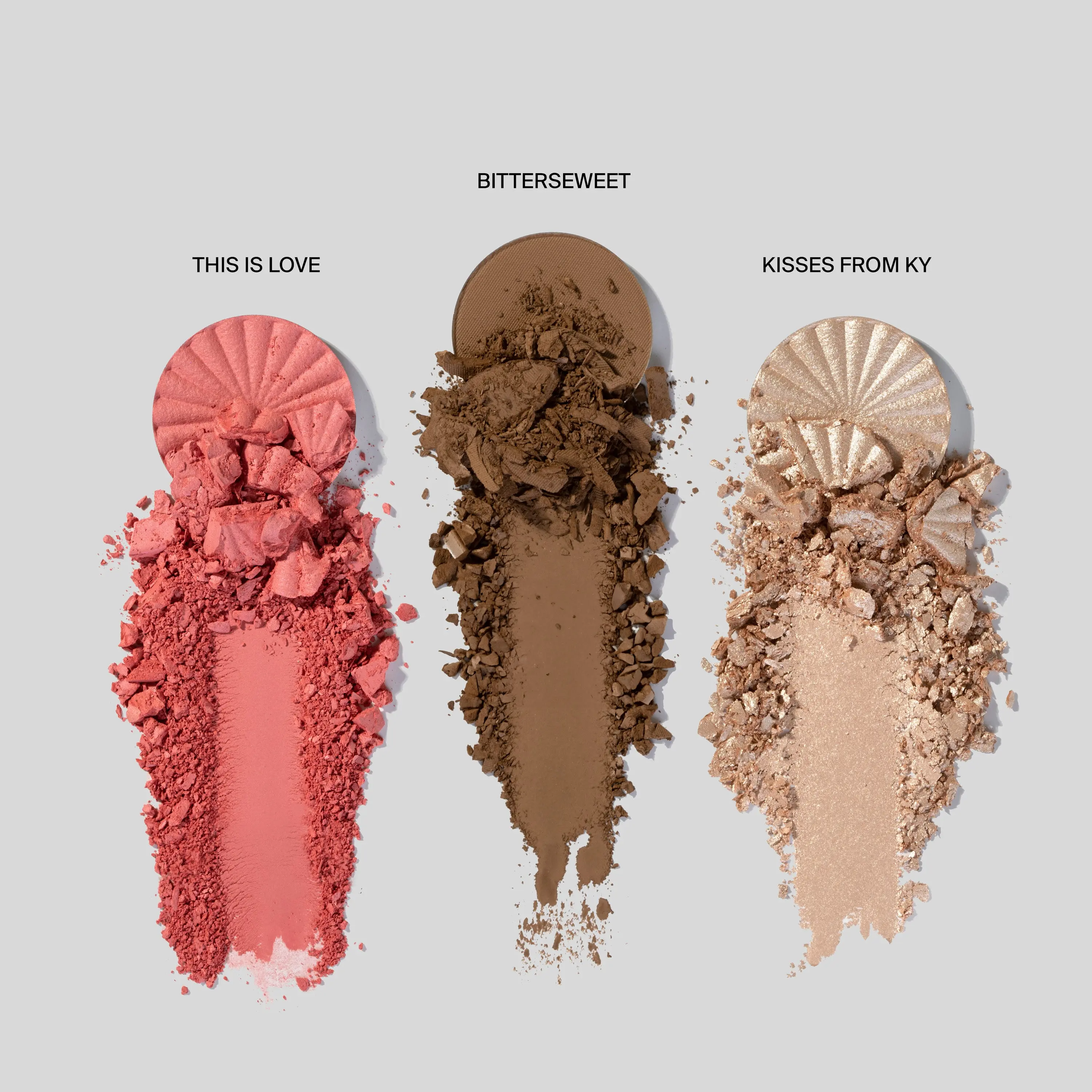 | Ingredients | Blush/Bronzer Ingredients: Mica, Zinc Stearate, Silica, Magnesium Silicate, Aluminum Starch Octenylsuccinate, Ethylene/Acrylic Acid Copolymer, Bismuth Oxychloride, Dimethicone, Trimethylsiloxysilicate, Boron Nitride, Phenoxyethanol, Ethylhexyglycerin. May Contain: CI77891, CI77492, CI15850. Eyeshadow Ingredients: Mica, Zinc Stearate, Silica, Boron Nitride, Magnesium Silicate, Dimethicone, Trimethylsiloxysilicate, Ethylhexyl Palmitate, Aluminum starch Octenylsuccinate, Ethylene/Acrylic acid Copolymer, Phenoxyethanol, Ethylhexyglycerin. May Contain: CI77163, CI77891, CI77492, CI77491, CI77499, CI77499, CI77007, CI77007, CI77288, CI42090, CI17200, CI77499, CI77000, CI77510, Calcium Sodium Borosilicate, Tin Oxide, Silicon Dioxide. Highlighter Ingredients: Mica, Zinc Stearate, Boron Nitride, Aluminum Starch Octenylsuccinate, Magnesium Aluminum Silicate, Silica, Trimethylsiloxysilicate, Dimethicone, Ethylene/ Acrylic Acid Copolymer, Phenoxyethanol, Ethylhexylglycerin. May Contain: Bismuth Oxychloride, CI77891, CI77491, CI77492, CI77499, CI77000. |