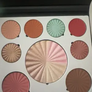 | Ingredients | Blush/Bronzer Ingredients: Mica, Zinc Stearate, Silica, Magnesium Silicate, Aluminum Starch Octenylsuccinate, Ethylene/Acrylic Acid Copolymer, Bismuth Oxychloride, Dimethicone, Trimethylsiloxysilicate, Boron Nitride, Phenoxyethanol, Ethylhexyglycerin. May Contain: CI77891, CI77492, CI15850. Eyeshadow Ingredients: Mica, Zinc Stearate, Silica, Boron Nitride, Magnesium Silicate, Dimethicone, Trimethylsiloxysilicate, Ethylhexyl Palmitate, Aluminum starch Octenylsuccinate, Ethylene/Acrylic acid Copolymer, Phenoxyethanol, Ethylhexyglycerin. May Contain: CI77163, CI77891, CI77492, CI77491, CI77499, CI77499, CI77007, CI77007, CI77288, CI42090, CI17200, CI77499, CI77000, CI77510, Calcium Sodium Borosilicate, Tin Oxide, Silicon Dioxide. Highlighter Ingredients: Mica, Zinc Stearate, Boron Nitride, Aluminum Starch Octenylsuccinate, Magnesium Aluminum Silicate, Silica, Trimethylsiloxysilicate, Dimethicone, Ethylene/ Acrylic Acid Copolymer, Phenoxyethanol, Ethylhexylglycerin. May Contain: Bismuth Oxychloride, CI77891, CI77491, CI77492, CI77499, CI77000. |