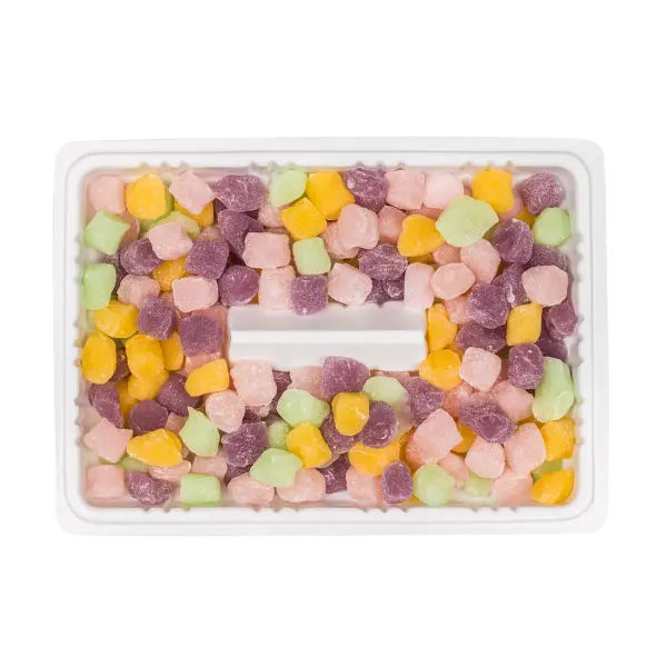 This Rainbow Mini Mochi is a tasty combination of strawberry, mango, blueberry, and honeydew flavors. Each bite-sized piece is individually coated in potato starch to prevent the pieces from sticking together. With a soft and chewy texture, this delicious mochi is guaranteed to satisfy your sweet cravings. Eat them by themselves or enjoy them as a topping with your frozen yogurt or desserts!