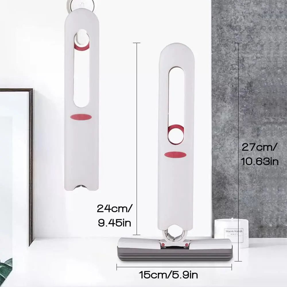 Big clean, tiny footprint. This portable self-squeezing mini mop is lightweight, compact, and powerful. Strong water absorption, simple dehydration, and one-hand operation. Perfect for small apartments, dorms, RVs, or any tight space.