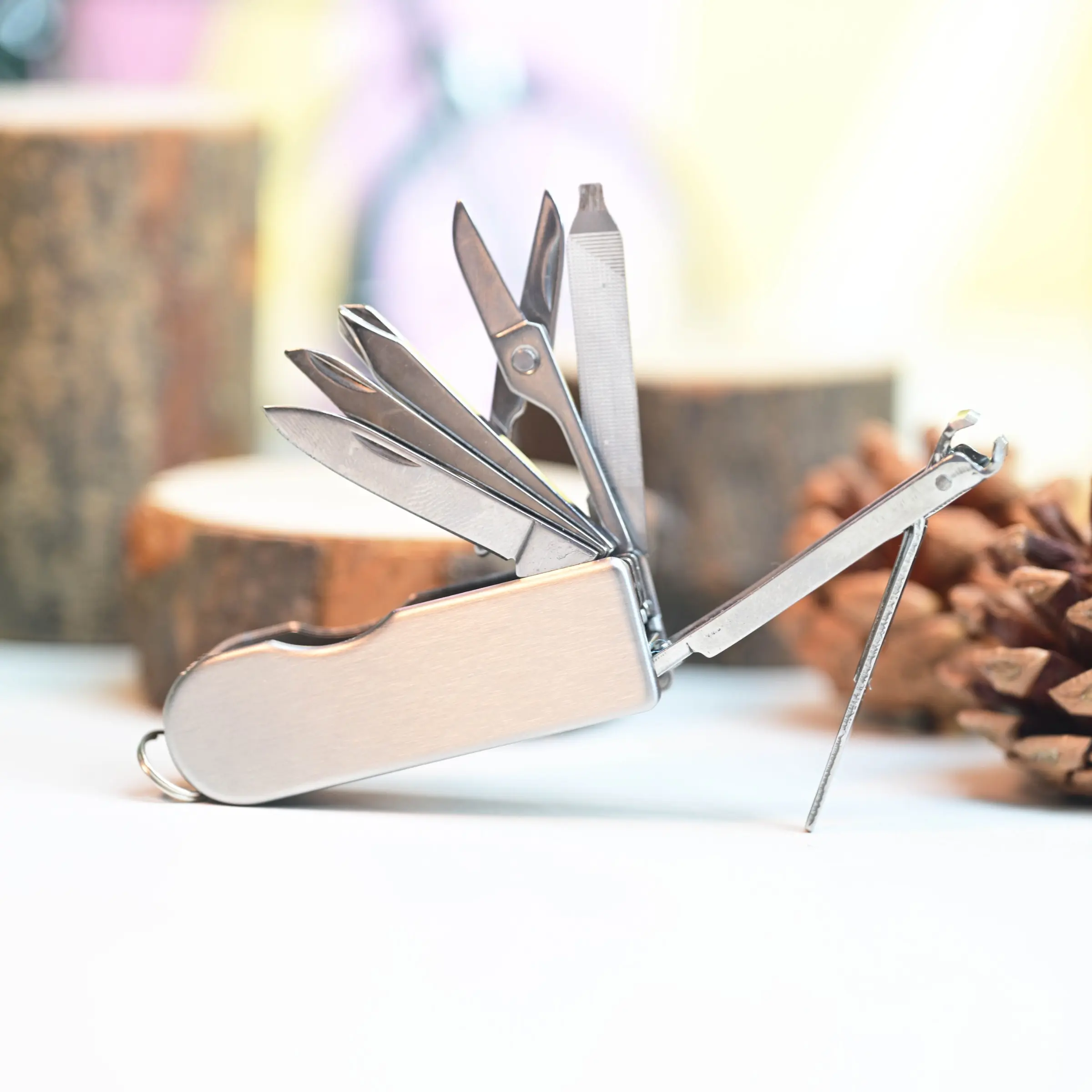 Mini Multifunctional Tool Set with Keychain, Portable Stainless Steel Folding Nail Clippers, Screwdriver, Scissors for Outdoor Camping and Daily Use