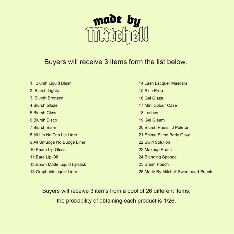 ·Buyers will receive 3 full-size Made By Mitchell products.
