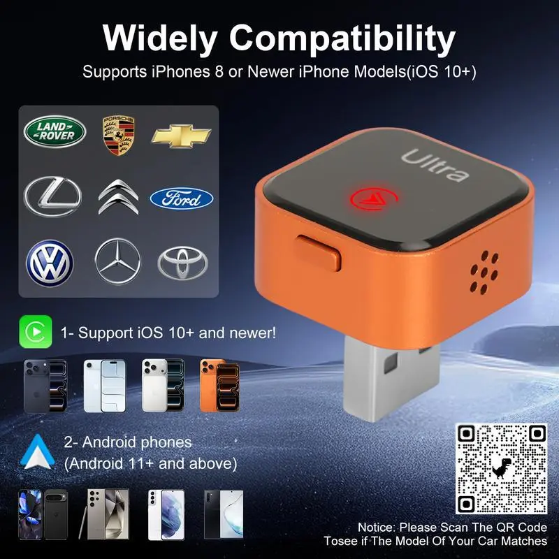 ·Wireless Connection: This adapter offers wireless connectivity, compatible with most vehicles. It ensures a seamless integration with your car's system. 📡