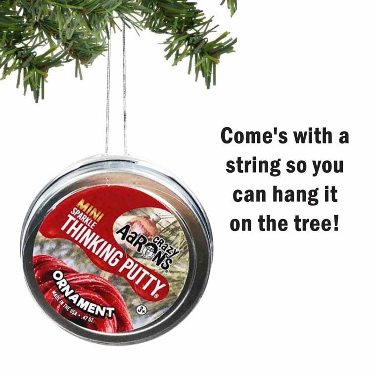 Start a new tradition with Ornament Thinking Putty®. A holly, jolly red, it shines with golden sparkles and includes a hangtag. Just place it right on the tree for a fun Christmas morning surprise.