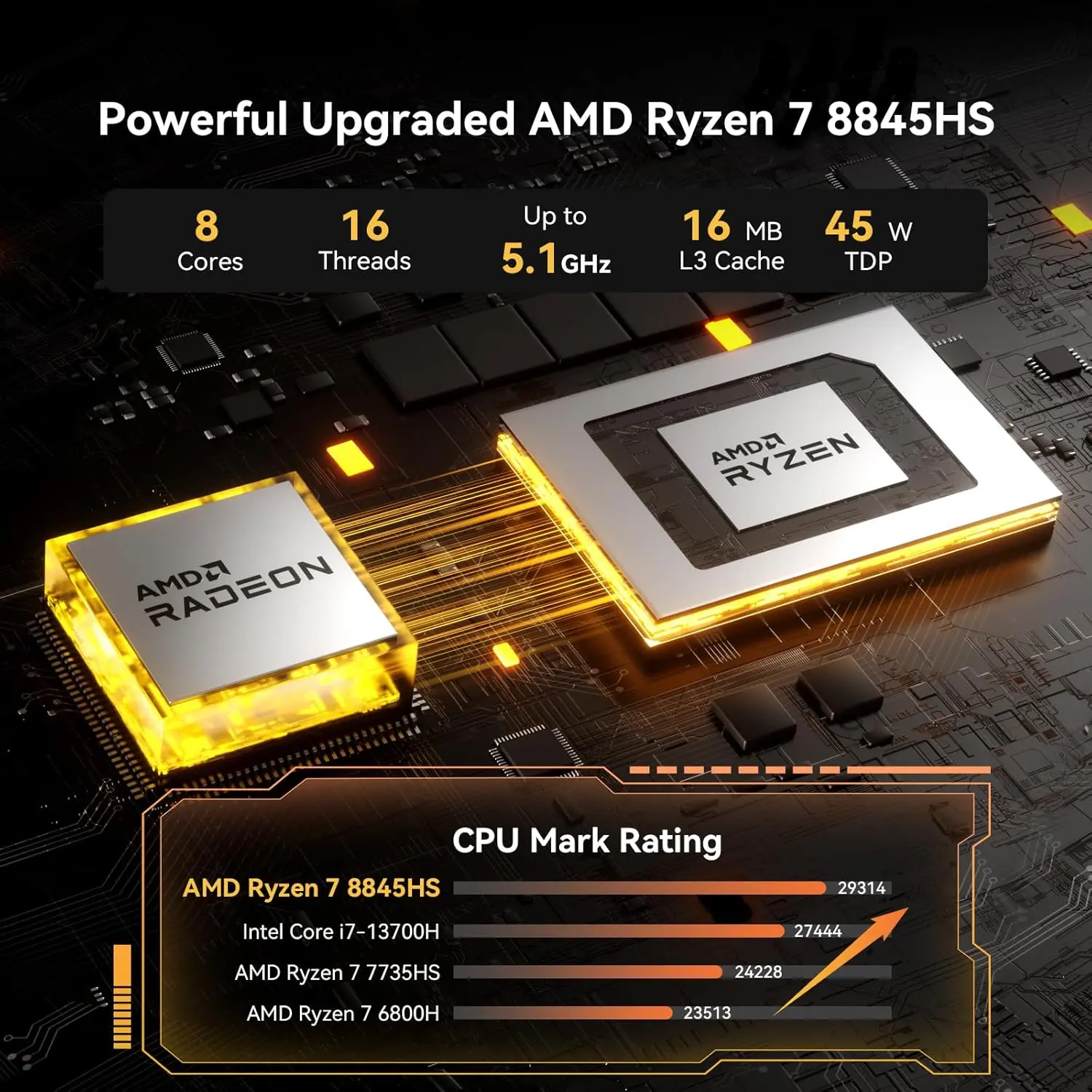 AMD R7-8745HS + Radeon 780M delivers professional power and advanced graphics. This powerful duo eliminates the need for a dedicated GPU. DDR5 5600 MT/s RAM up to 64 GB and PCIe 4.0 SSD up to 2 TB ensure expandable memory and storage for agile, smooth performance. Ideal for business, home office, and family use.