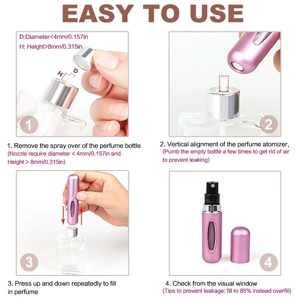 Mini Perfume Atomizer 5ml: Refillable Leak-Proof Travel Spray Bottle, TSA Approved for Airplane, Perfect Portable Fragrance Container for Women & Men, Ideal Gift for Friends, Lovers & Family.