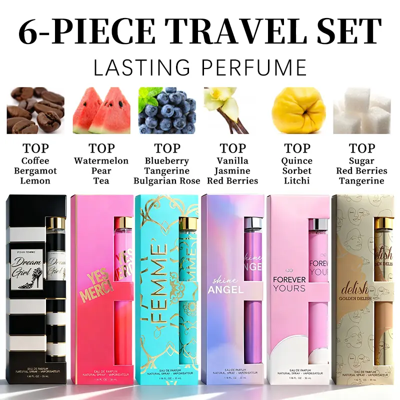 Aside from my box being damaged during delivery, all of my perfumes were in tact. Out of the 6 pcs set I must say all of them smelled good. Not one bad one. And the scent is lasting. I like to layer and top off other scents but they smell good alone. Looking forward to my next purchase.