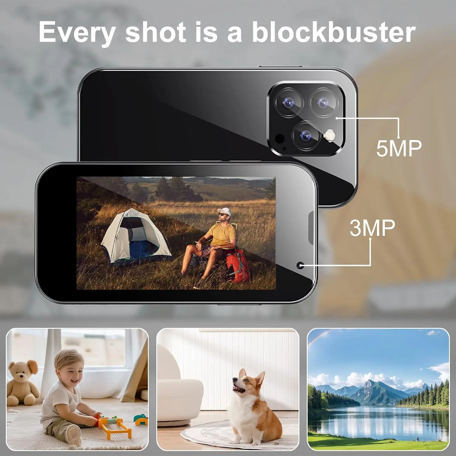 3.Dual Camera phone: The mini smartphone comes with a 3MP front camera and a 5MP rear camera, enabling you to take beautiful photos in a compact form factor.It has face ID for enhanced privacy protection.Moreover, with dual SIM and expandable storage (up to 256GB), you can insert either two SIM cards or one SIM along with one microSD card, providing more space for storing your data.