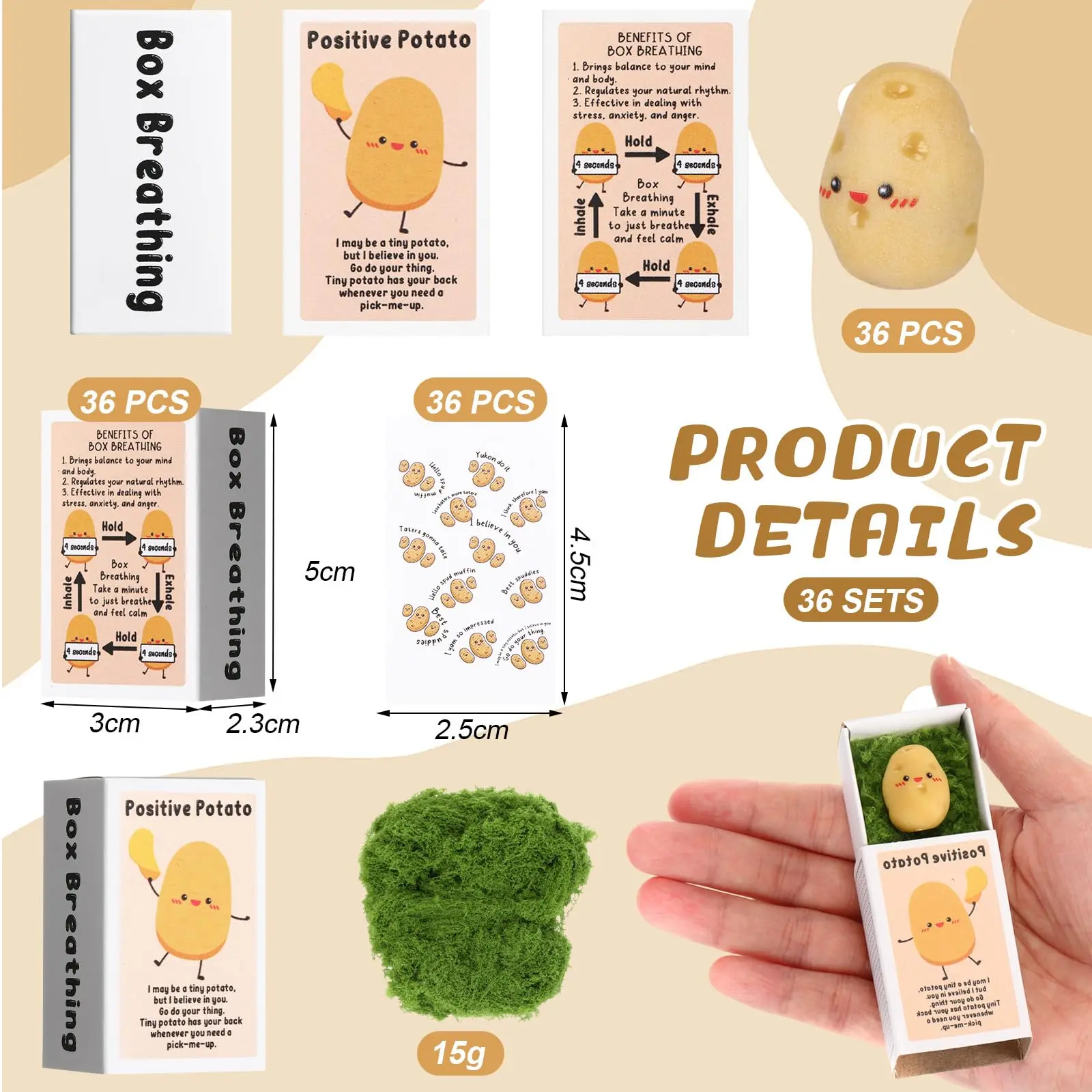 ·Generous Package: you get more with our inspirational potato appreciation gifts; The package includes 36 mini emotional support potato bulk, 36 cards, 36 potato themed boxes, and artificial moss; This sufficient quantity allows you to send to employees, teachers, and students