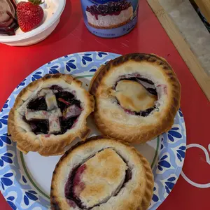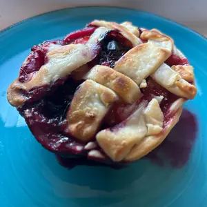 The Dash Mini Pie makes the most adorable and delicious mini pies. I used ready made frozen pie crust with a fresh mixed Berry filling. For the pie top I made a lattice weave. It cooked does for about 12 minutes, browned evenly and was bubbling. Easy to remove.