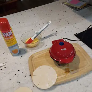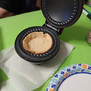 We purchased a mini waffle maker not a mini pie maker. It’s great at making waffles.