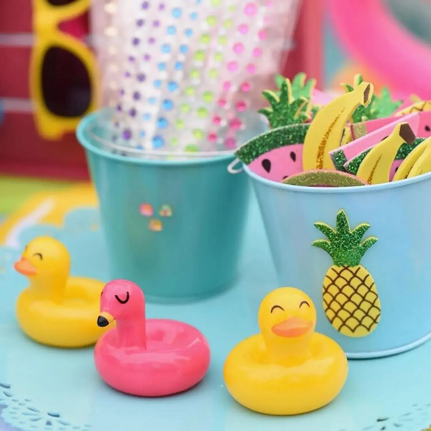 These Mini Float Character Toys are perfect as pool party favors! Featuring duck, flamingo and unicorn-shaped designs as adorable pool floats, these can be handed out to guests at birthday bashes, summer barbecues, lake days and pool parties. They can also be dropped into goody bags at a luau. Little ones and adults alike will enjoy these cute and colorful toys! © OTCbr