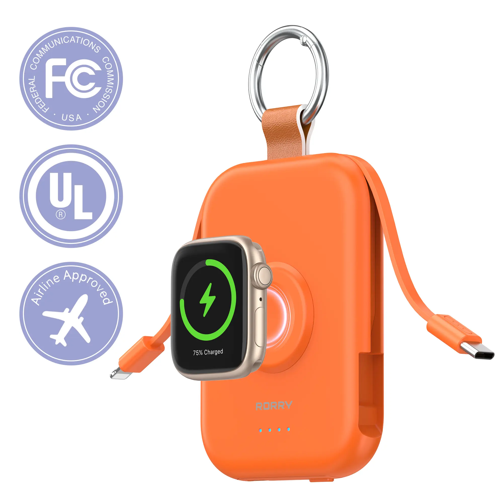 Ever been caught with a dead Apple Watch or iPhone while traveling? The RORRY Mini Portable Power Bank is your pocket-sized lifesaver. With a 5000mAh capacity, it charges your Apple Watch Series 2 through 11 and iPhone 12 through 17 series multiple timesâperfect for those long days out or travel adventures. Its built-in USB Type-C cable and keychain design mean no more tangled cords or forgotten cables. Clip it to your backpack or slip it in your pocket and stay powered up anywhere. Plus, you can charge multiple devices at once, so your gadgets stay ready for action. Safety is top-notch with protection against overheating and short circuits, giving you peace of mind. The power bank recharges fully in just 2.5 hours, making it quick and convenient. Each box includes the power bank, a 1-meter USB-C cable, and a user manual, with 24-hour customer support and lifetime technical help. Available in multiple colors, itâs not just practical but stylish too. Whether you're gifting it or keeping it for yourself, this travel-friendly charger is a must-have for Apple fans. Grab yours now and never worry about low battery again!