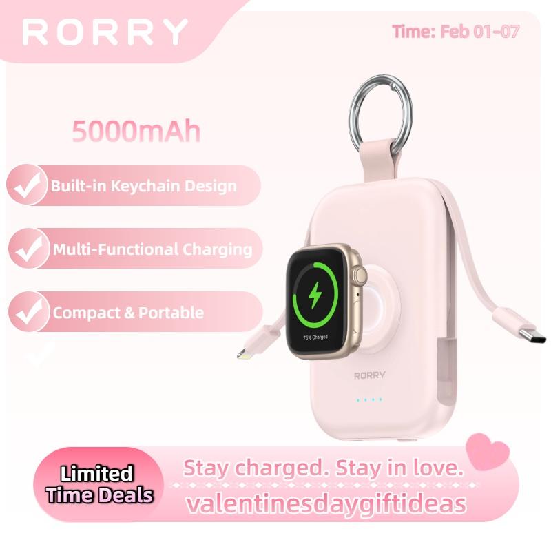 Ever been caught with a dead Apple Watch or iPhone while traveling? The RORRY Mini Portable Power Bank is your pocket-sized lifesaver. With a 5000mAh capacity, it charges your Apple Watch Series 2 through 11 and iPhone 12 through 17 series multiple times—perfect for those long days out or travel adventures. Its built-in USB Type-C cable and keychain design mean no more tangled cords or forgotten cables. Clip it to your backpack or slip it in your pocket and stay powered up anywhere. Plus, you can charge multiple devices at once, so your gadgets stay ready for action. Safety is top-notch with protection against overheating and short circuits, giving you peace of mind. The power bank recharges fully in just 2.5 hours, making it quick and convenient. Each box includes the power bank, a 1-meter USB-C cable, and a user manual, with 24-hour customer support and lifetime technical help. Available in multiple colors, it’s not just practical but stylish too. Whether you're gifting it or keeping it for yourself, this travel-friendly charger is a must-have for Apple fans. Grab yours now and never worry about low battery again!