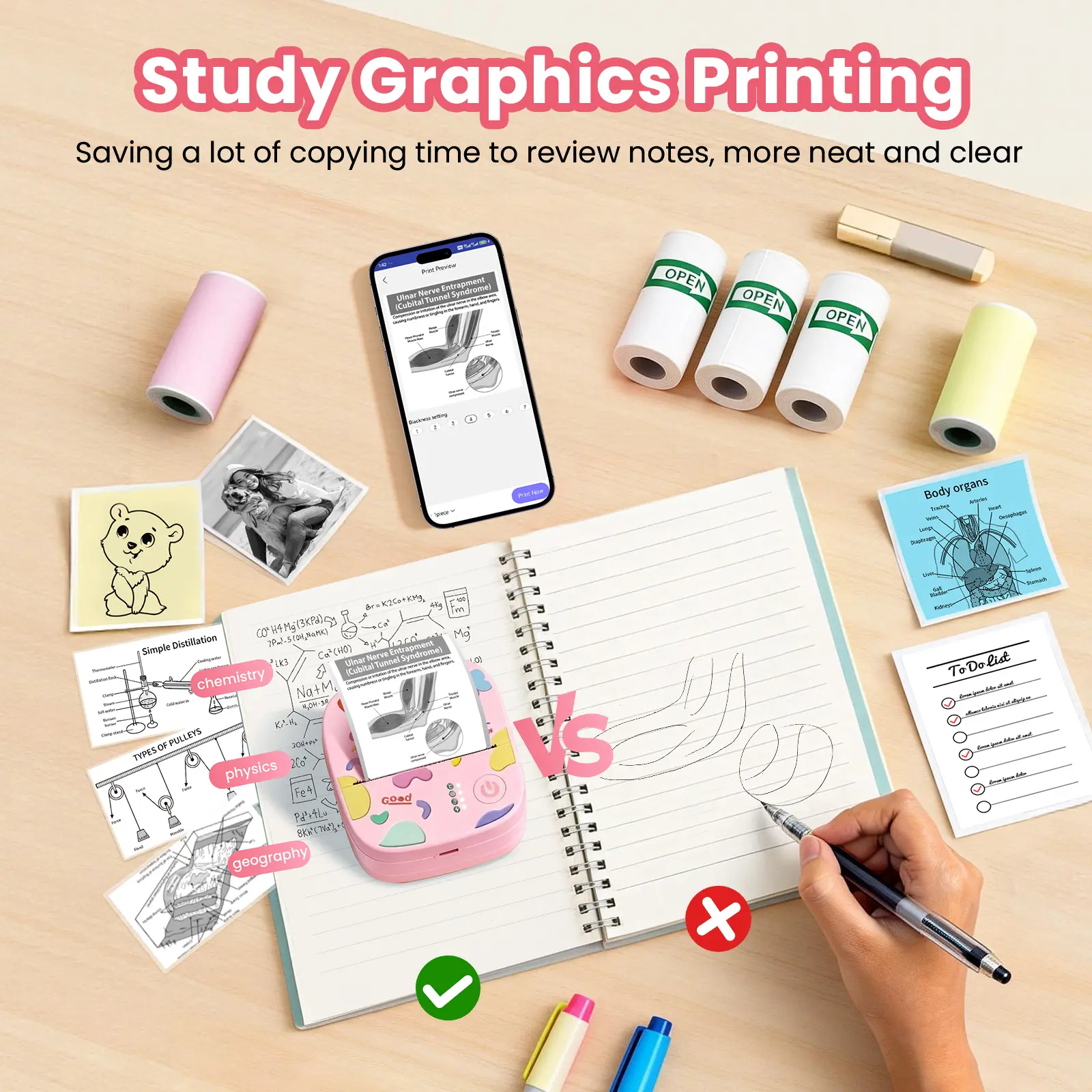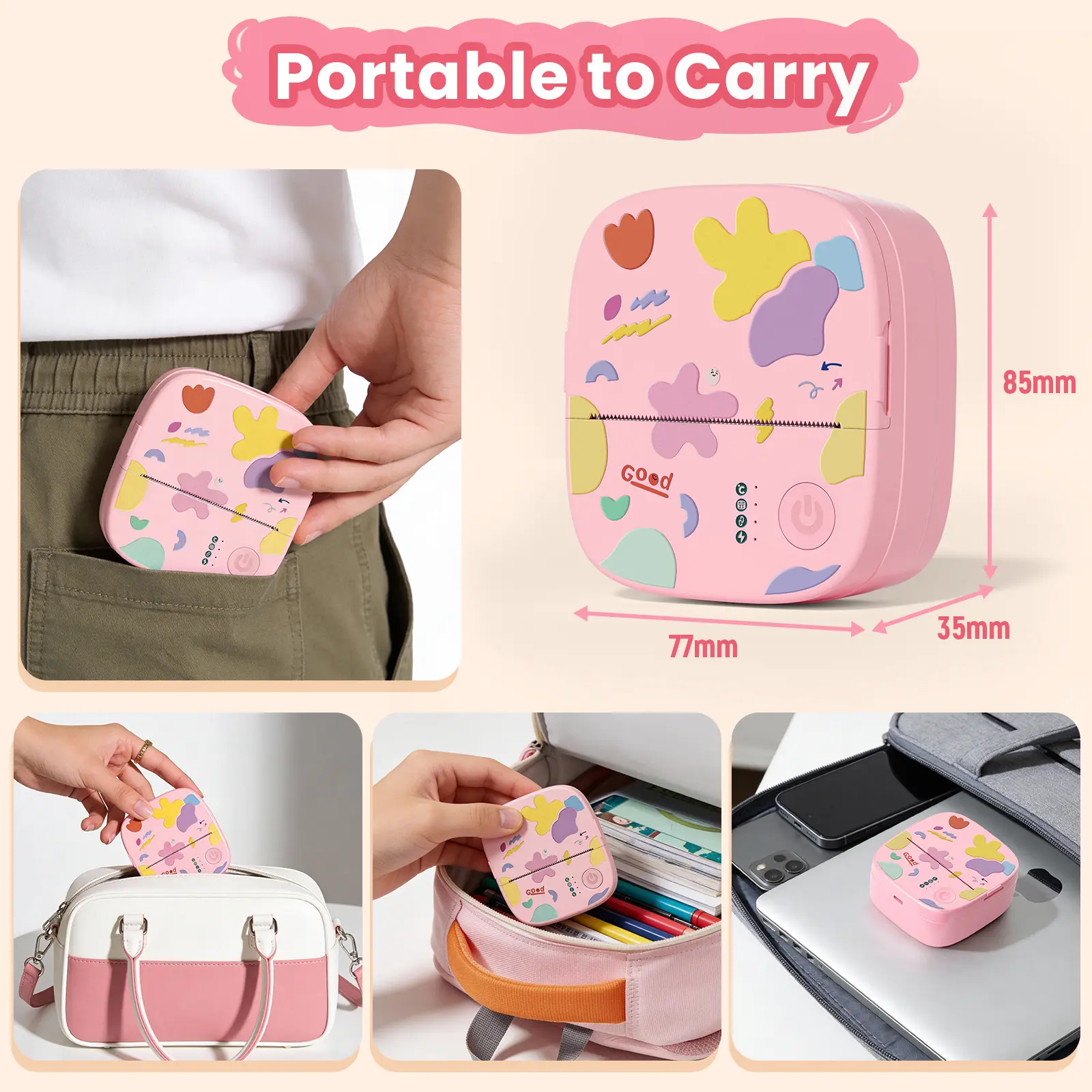 Compact and lightweight (only 0.26 lbs, 3.3 x 3.1 x 1.4 in), this mini printer easily fits into your pocket or bag. Take it anywhere — school, office, travel, gym — and print on the go!