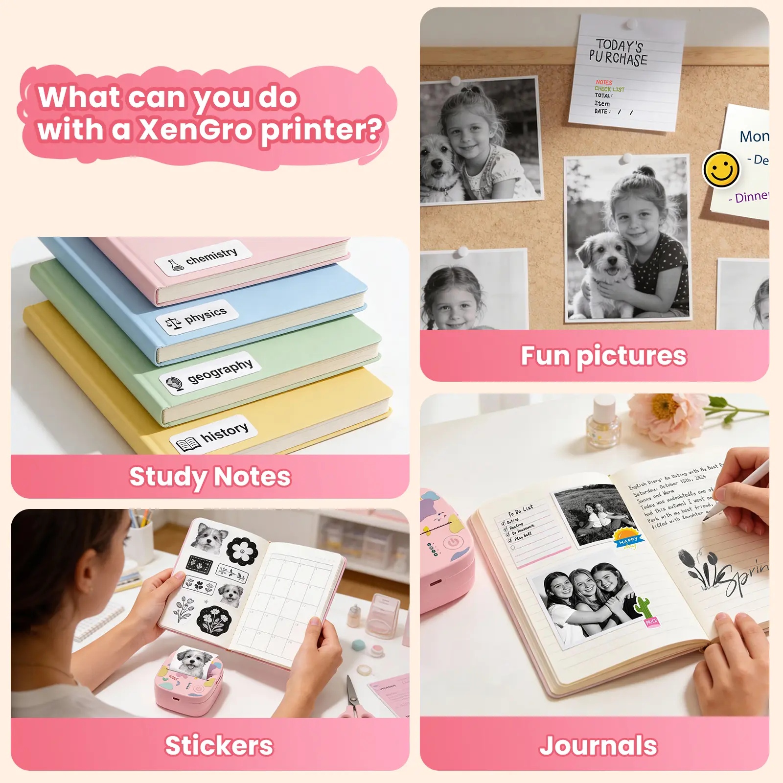 Meet your all-purpose printing companion — XenGro mini portable printer. Whether you're organizing your to-do list, printing study notes, decorating journals, crafting DIY cards, or capturing memories with photos, this pocket-sized powerhouse has you covered. Comes with a built-in sawtooth for smooth, clean tearing — just tear straight for the best result.