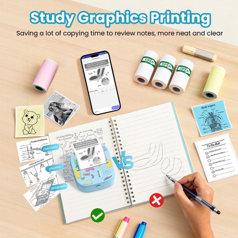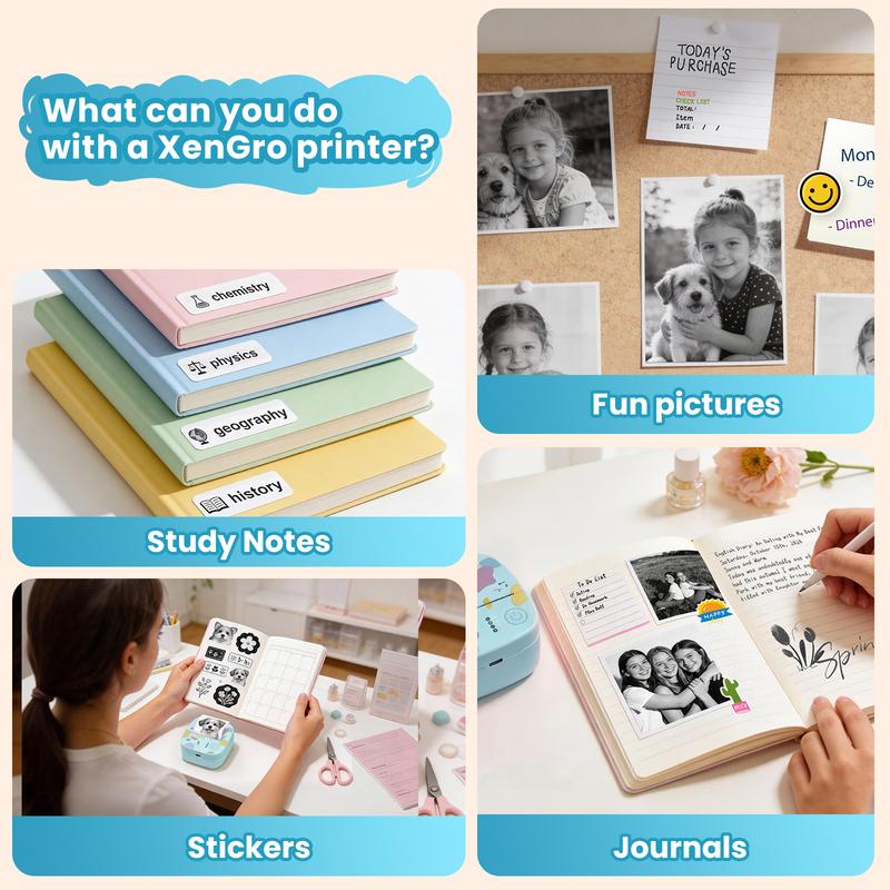Meet your all-purpose printing companion — XenGro mini portable printer. Whether you're organizing your to-do list, printing study notes, decorating journals, crafting DIY cards, or capturing memories with photos, this pocket-sized powerhouse has you covered. Comes with a built-in sawtooth for smooth, clean tearing — just tear straight for the best result.